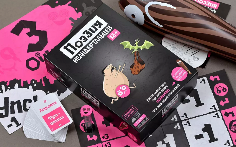 В отличие от базовой "Поэзии неандертальцев", версия 18+ наполнена словечками разной степени пошлости. Детям эту игру до совершеннолетия точно давать не стоит, а вот для взрослой вечеринки или дружеской посиделки она в самый раз. Чем больше "остреньких" слов отгадает ваше племя, тем больше у вас шансов забороть противников в этой жаркой битве. Доминируй, властвуй, угорай.