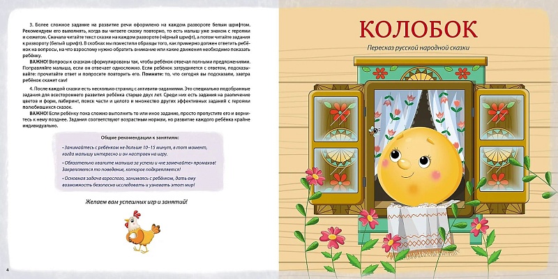 Два года - время наивысшей активности мозга ребёнка, когда у малыша формируются и укрепляются нейронные связи. Это также важный этап развития речи, и, даже если ребёнок пока мало говорит, он уже знает и понимает очень много. В альбом вошли шесть самых первых сказок и активити-задания к ним для развития речи, мышления, внимания, памяти и воображения. Правильно подобранные по возрасту сказки - это отличный материал для комплексного развития малышей. На страницах книги даны увлекательные задания. И после каждой сказки есть страницы с активити. Это специально подобранные задания для всестороннего развития ребёнка.