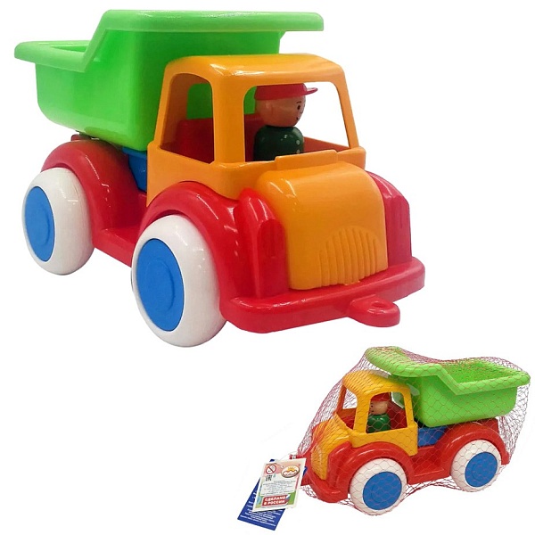 • Игрушка дополнена фигуркой водителя и маленькой лопаткой.