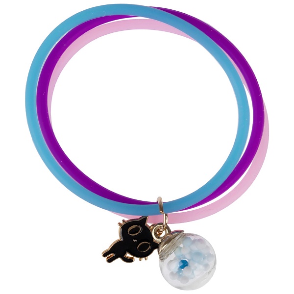Этот яркий и игривый браслет на руку выполнен из силикона и украшен двумя подвесками. Внутри шарика подвижные конфетти, которые сверкают при каждом движении. Металлический шарм "Black Kitty" добавляет браслету особое очарование. Этот браслет идеально подходит для праздников, таких как день рождения или Новый год. Он подходит для любого времени года, так как его можно носить и летом, и зимой. Легкий и удобный, он прекрасно сочетается с другими украшениями делая образ более игривым и оригинальным. Такой браслет станет любимым аксессуаром и дополнит коллекцию бижутерии.