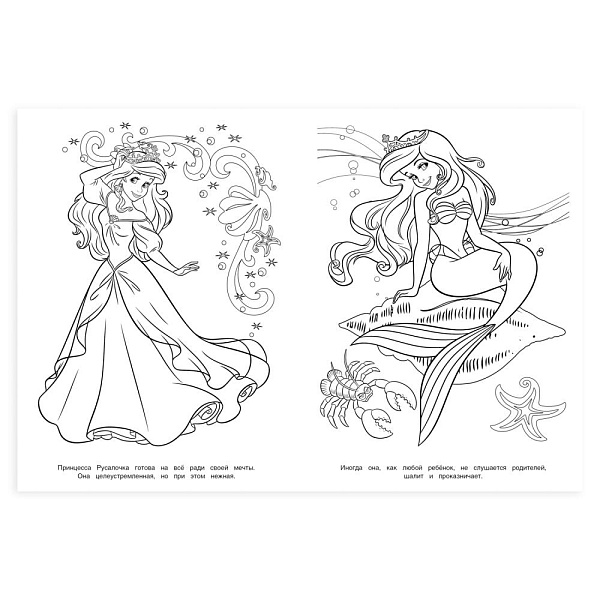 Эта увлекательная раскраска с очаровательными принцессами из известных сказок непременно понравится вашему ребёнку. В ней девочка найдёт интересные картинки с чёткими контурами и сюжетными текстами к ним. Благодаря удобному формату раскраску можно взять с собой в путешествие.