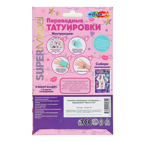 При помощи этого набора можно примерить на себя стильный образ. Тату легко наносятся и смываются, безопасны для детей, а главное, их можно менять.