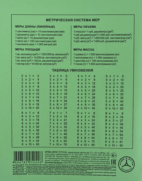 Тетрадь Зеленая, 12л, А5, клетка, на скобе 013937