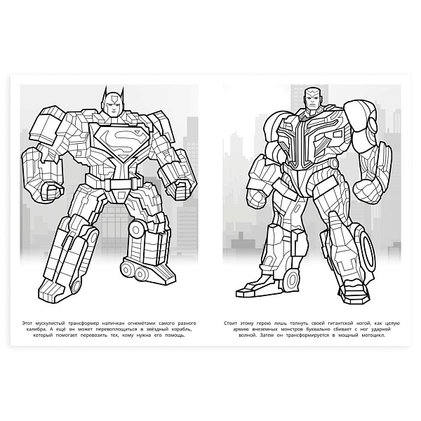 Эта увлекательная раскраска с отважными супергероями в виде роботов-трансформеров непременно понравится вашему ребёнку. В ней он найдёт интересные картинки с чёткими контурами и сюжетными текстами к ним. Благодаря удобному формату раскраску можно взять с собой в путешествие.