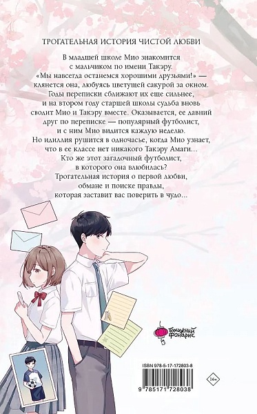 Годы переписки сближают их еще сильнее, и на втором году старшей школы судьба вновь сводит Мио и Такэру вместе. Оказывается, ее давний друг по переписке — популярный футболист, и с ним Мио видится каждую неделю. Но идиллия рушится в одночасье, когда Мио узнает, что в ее классе нет никакого Такэру Амаги...