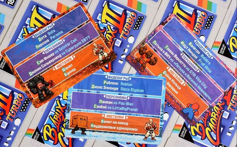Объяснять кино в в двух словах мы уже научились – теперь пришёл черёд настолок и видеоигр! Как и раньше, игроку нужно выбрать одно название игры или имя персонажа со своей карточки и при помощи двух слов объяснить его товарищам. При этом оба слова должны начинаться с первых букв невыбранных для объяснения названий. Никаких читов и перезагрузок – всё по хардкору: выбрали название, задали ассоциацию и надеетесь, что ваши тиммейты не подведут и догадаются, что означает “зелёный ромб”, кто такой “усатый прыгун” и зачем нужно “просыпаться самураю”. Всего в игре три уровня-категории – “видеоигры”, “персонажи” и “настолки”. Кто соберёт к концу третьего раунда больше всего карточек с отгаданными словами, тот и победил. Готовы к увлекательному баттлу слов и умов? Тогда жмите Start и погнали!