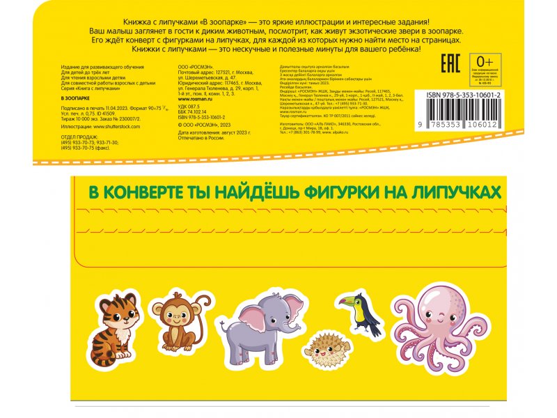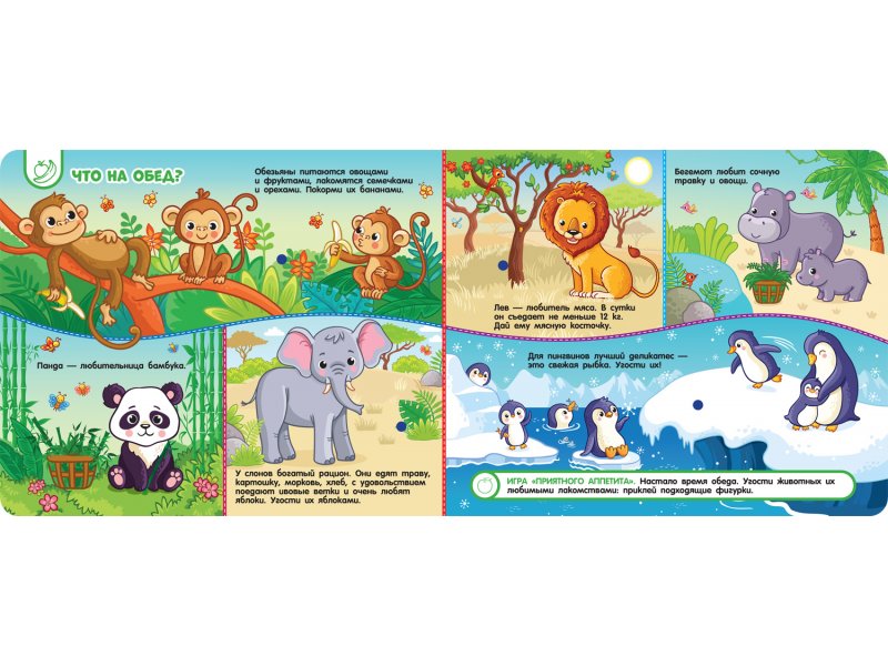 Книжка с липучками В зоопарке — это яркие иллюстрации и интересные задания! Ваш малыш заглянет в гости к диким животным, посмотрит, как живут экзотические звери в зоопарке. Его ждёт конверт с фигурками на липучках, для каждой из которых нужно найти место на страницах.