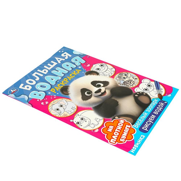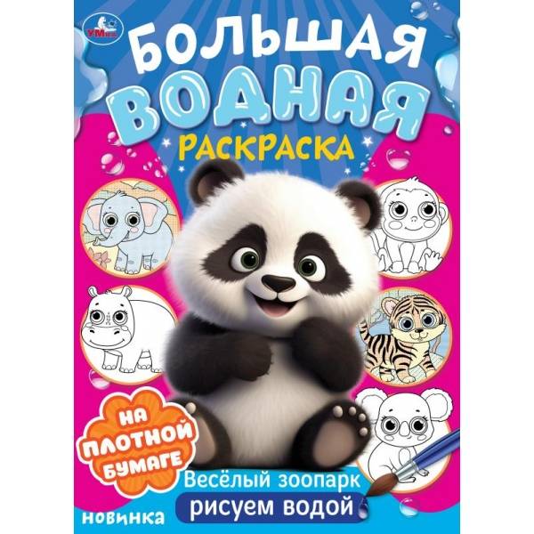 Большая водная раскраска «Весёлый зоопарк» из серии «Рисуем водой» ТМ «УМка» обязательно понравится маленькому художнику: