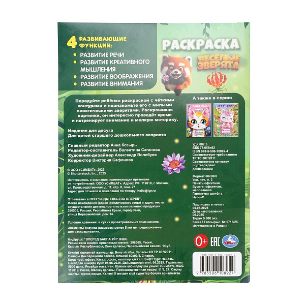 Раскраска «Весёлые зверята» ТМ «УМка» обязательно понравится юным художникам: