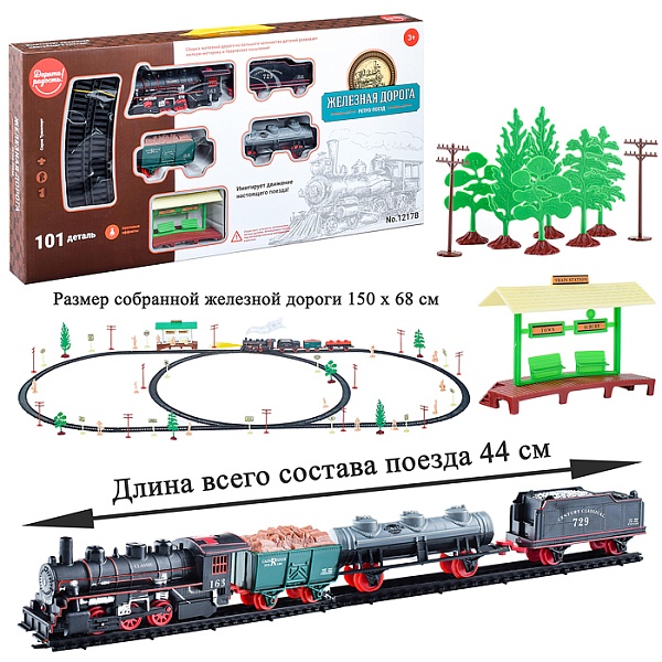 Железная дорога "Ретро-поезд" на батарейках, в коробке 1217B-1