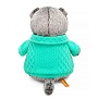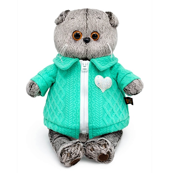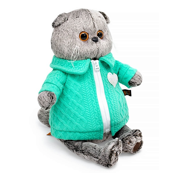 Кот Басик в шикарной теплой курточке, из ткани с имитацией вязки чистого бирюзового оттенка.