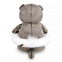 Кот Басик в забавном плавательном круге в виде Гусика. Мягкий круг Гусик сшит из тактильно приятного меха с коротким ворсом белого цвета, клювик выполнен из охристого софта. Также на Басике милые тапки в виде лапок гуся из софта охристого цвета.