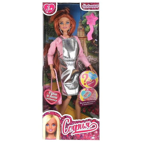 Будущая мама София одета в серебристый сарафан и розовую кофточку. Образ куколки дополняют элегантные крупные серьги и элегантная сумочка. Одежду и аксессуары легко снять и надеть. С такой модной куклой девочке будет интересно и весело играть: благодаря тому, что руки и ноги куклы подвижны, им можно придать любое положение. У Софии длинные красивые волосы, которые хозяйка куклы сможет заплетать в разные причёски. Детально проработанный дизайн игрушки вдохновит девочку на новые игровые сюжеты.