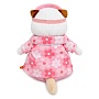 Кошечка Ли-Ли в очень уютном комплекте для сна. На ней пижамка в розовых оттенках, состоящая из курточки с принтом в крупный цветок на розовом поле и розовых штанишек. Пижамка сшита из мягкого трикотажа с небольшим начёсом и отделана белым кантом. Также на Ли-Ли нежно-розовая маска для сна с принтом в виде цветка.