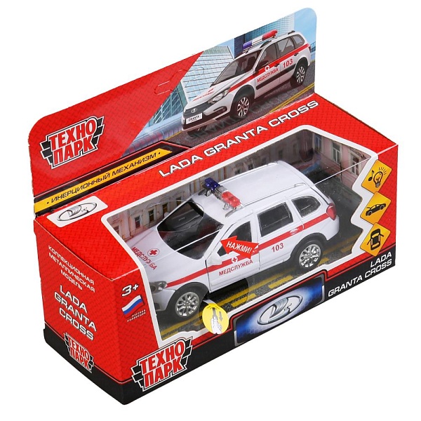 Металлическая инерционная машина «Lada Granta Cross 2019. Скорая» ТМ «Технопарк» порадует ребёнка и коллекционера: