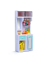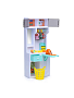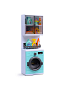 Открывается верхний шкафчик, дверца стиральной машинки, при нажатии кнопки, машинка издает звук и крутится барабан, работает от батареек ( 3шт "АА" в комплект не входит).