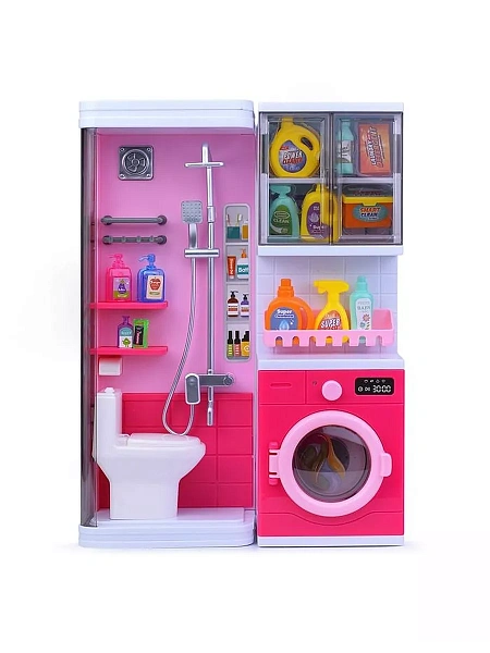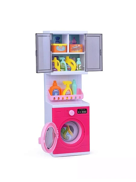 Реалистичный набор с интерактивной стиральной машиной и функциональной мебелью. Открывающиеся дверцы, звуковые эффекты и подвижные элементы сделают игру по-настоящему увлекательной.