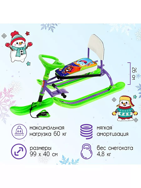 Снегокат предназначен для перевозки детей по плотному снегу или льду, катанию с горок.