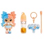 В наборе: ароматизированная кукла высотой 10 см, съемный наряд, пара обуви, блеск для губ, дополнительный цвет с ароматом, ложечка для перемешивания, кольцо с цепочкой для крепления к кукле и блеску.